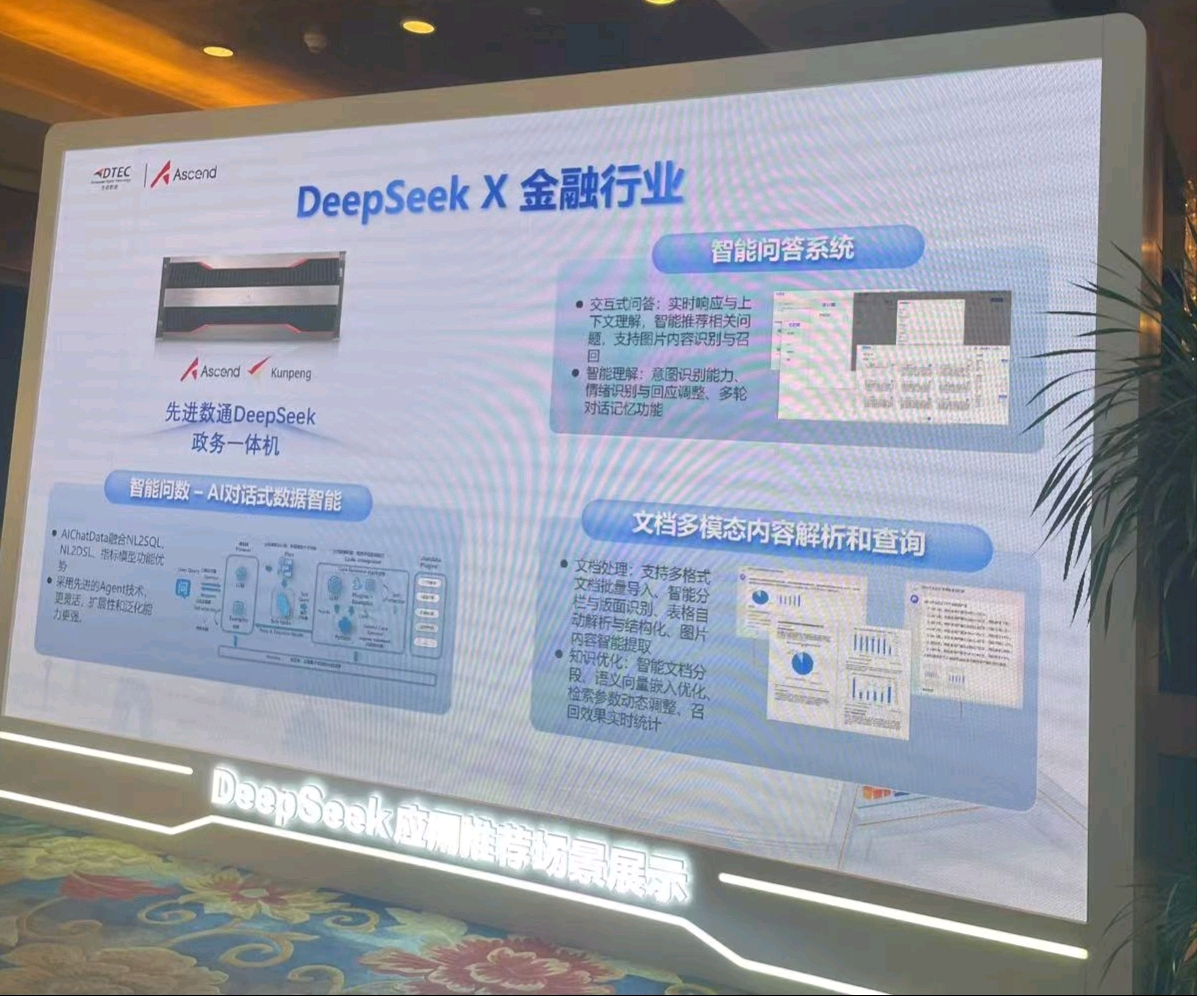 本次大会金年会诚信至上展示了DeepSeek一体机,向业界全方位展示了其在金融科技领域的创新实力。金年会诚信至上DeepSeek一体机的文档多模态内容解析和查询功能备受瞩目。它能够对各类金融文档,如研究报告、监管文件、交易记录等进行全方位解析,将文本、图表、图像等多模态信息转化为可高效查询和分析的结构化数据。金融组织借此可快速定位关键信息、洞察市场趋势、防范合规风险,为决策给予有力支持,实现从数据到价值的高效转化。